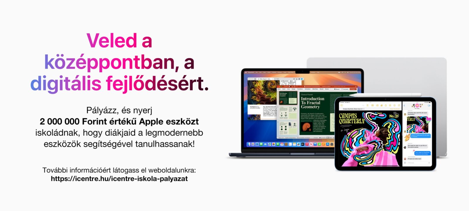 Az iCentre pályázatot hirdet általános- és középiskolák számára, hogy segítse a diákokat az Apple ökoszisztéma használatának megismerésében és digitális képességeik fejlesztésében. A vállalat nettó kétmillió forint értékben biztosít termékeket és szolgáltatásokat a nyertes intézmény számára, amit oktatási célra használhatnak fel. Az iSkola pályázatot idén első alkalommal írja ki az iCentre, és innentől minden évben meghirdeti majd.